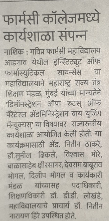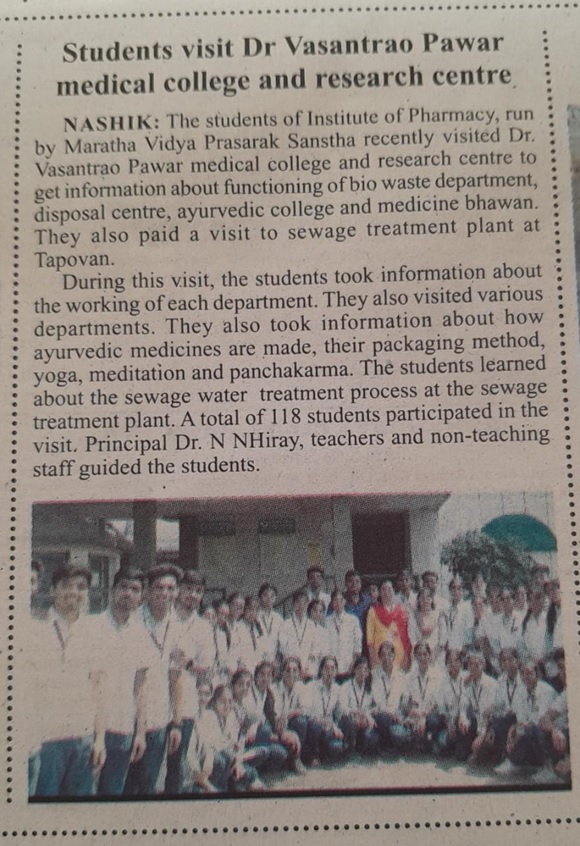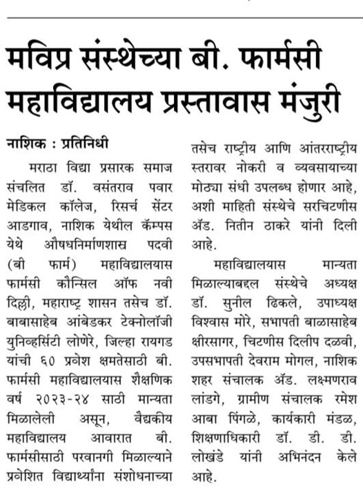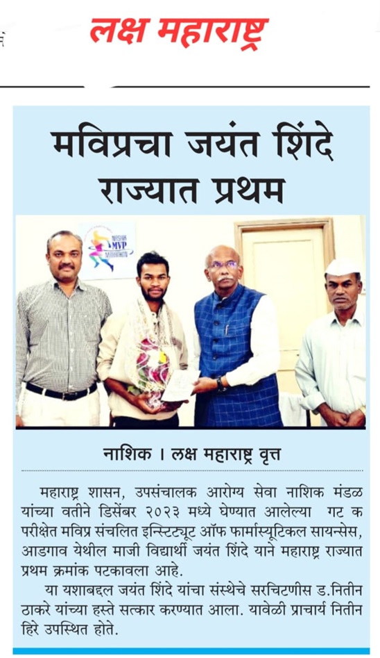 The MVP’s Institute of Pharmaceutical Sciences was established in 1997 with the two-year Diploma program in Pharmacy (D. Pharm.) recognized by the Directorate of Technical Education also approved by the Pharmacy Council of India, and All India Council for Technical Education (AICTE).